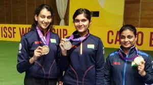 India’s Shri Nivetha, Esha Singh, and Ruchita Vinerkar have won the gold medal in the women’s 10m air pistol team event of the ISSF World Cup in Cairo, Egypt. With this win, India is leading the medal table with three medals, including two gold and silver. Andrea Katharina Heckner, Sandra Reitz and Carina Wimmer of Germany settled for the silver medal.