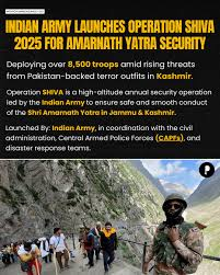 The Indian Army has launched Operation SHIVA 2025 to ensure the safe and smooth conduct of the Shri Amarnath Yatra in Jammu and Kashmir. The operation, announced on Friday, involves heavy deployment of troops, modern surveillance tools, and disaster response measures. The security drive is vital due to increased threats from Pakistan-backed groups this year.